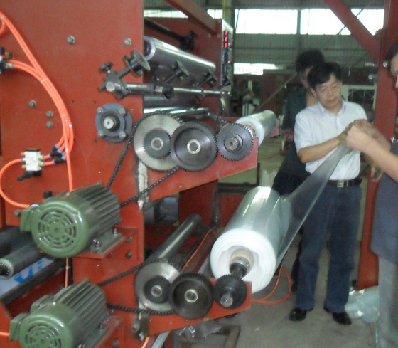 該機(jī)組采用下吹及自溢水冷形式,結(jié)合高塑化,長徑比大的擠出系統(tǒng),并配套高精度模具,使其制品具有極高的透明度,良好的阻隔性,熱封性等特點(diǎn),是生產(chǎn)高檔包裝薄膜的理想選擇。